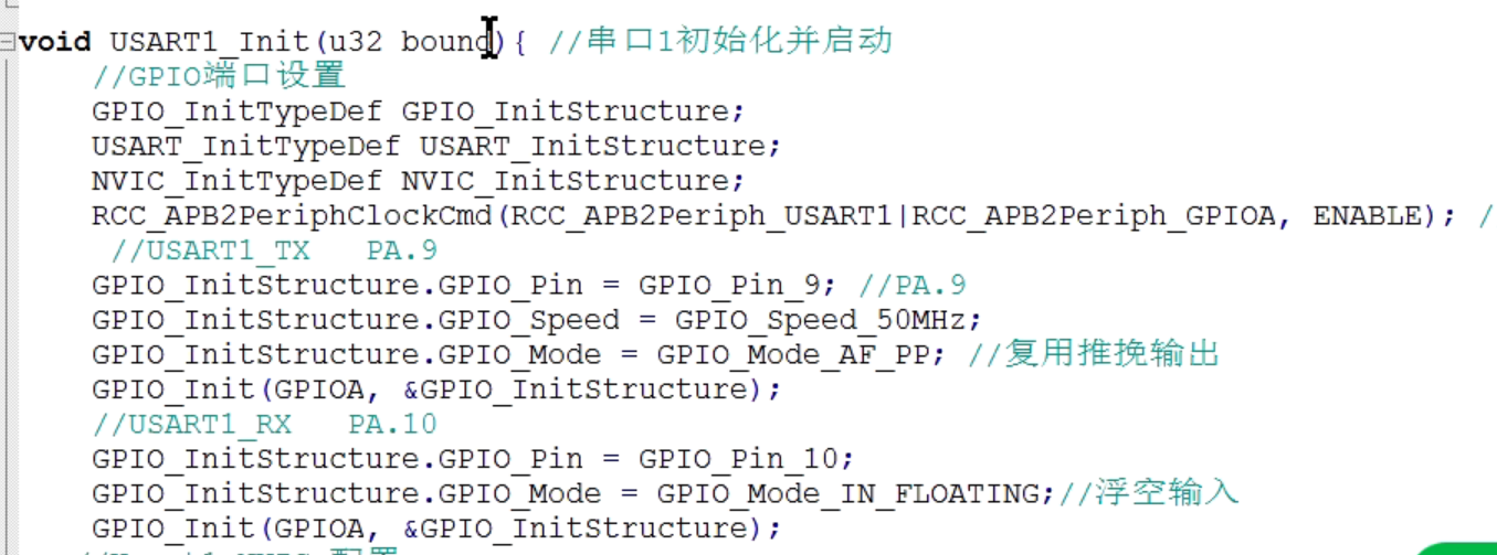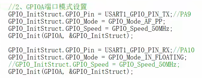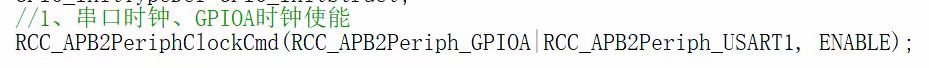 1.串口时钟 ,GIPO时钟使能 —— RCC_ABP2PeriphClockCmd();