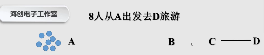 我们的八个人要从 A 到达 D ,但是我们不能直接到达,需要经过 B 和 C