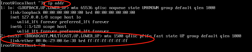 在输入ip addr或者ip a 都可以,查看ip地址就可以了