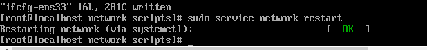 然后输入:cd /etc/sysconfig/network-scripts/ 找到ifcfg-enc33这个文件进行编辑 输入 vi ifcfg-ens33