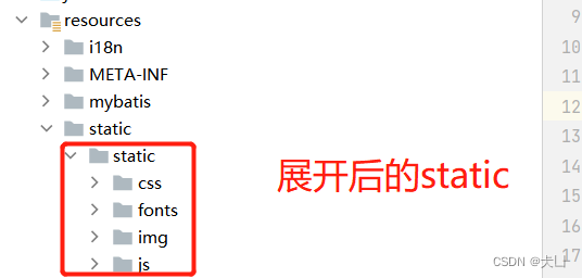 2、拿到打包后的dist文件,放到“ruoyi_admin”模块的“resources”下面新建“static”和“templates”