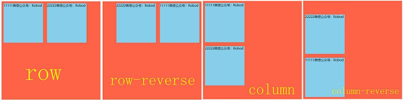 <head><style>.father {display: flex; /* 使用flex布局 */width: 500px;height: 500px;background-color: tomato;/* row、row-reverse、column、column-reverse */flex-direction: column-reverse;}.son {width: 200px;height: 200px;margin: 10px;background-color: skyblue;}</style>