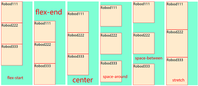 | flex-start | 在侧轴的头部开始排列,默认值 |