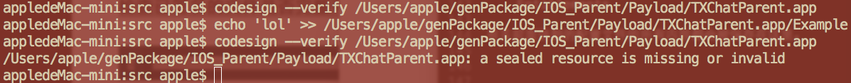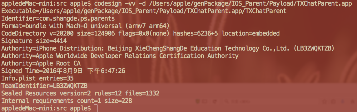 codesign --verify /Users/apple/genPackage/IOS_Parent/Payload/TXChatParent.app
