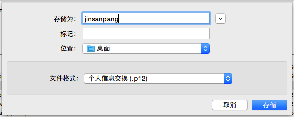 选择 ”个人信息交换(.p12)” 文件格式,导出 .p12 文件!由于 p12 文件包含个人信息,所以必须要密码。