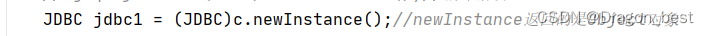 已知newInstance方法返回的是Object对象,此处将该Object对象强制类型转换为JDBC接口类型