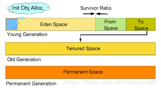 2.新生代内存按照8:1:1的比例分为一个eden区和两个survivor(survivor0,survivor1)区。一个Eden区,两个 Survivor区(一般而言)。大部分对象在Eden区中生成。回收时先将eden区存活对象复制到一个survivor0区,然后清空eden区,当这个survivor0区也存放满了时,则将eden区和survivor0区存活对象复制到另一个survivor1区,然后清空eden和这个survivor0区,此时survivor0区是空的,然后将survivor0区和survivor1区交换,即保持survivor1区为空, 如此往复。