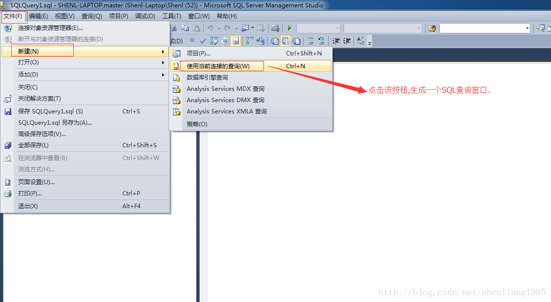 3 如下图所示新建使用当前连接生成一个查询窗口.