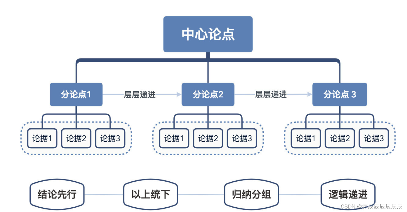 结论先行,以上统下,归类分组,逻辑递进。先重要后次要,先总结后具体,先框架后细节,先结论后原因,先结果后过程,先论点后论据。
