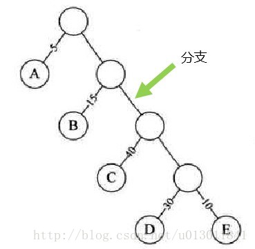 4重复2和3步骤,直到F只含一棵树为止。这棵树便是哈夫曼树.