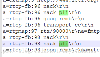 在创建视频连接的SDP协议里面,会协商以上述哪种类型进行NACK重转。以webrtc为例,会协商两种NACK,一个rtp报文丢包重传的nack(nack后面不带参数,默认RTPFB)、PLI 视频帧丢失重传的nack。