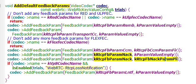 NACK作为RTP层反馈参数,和Video Codec联系在一起。WebRTC在初始化阶段,创建call会话时,会收集本端支持的所有Video Codec,NACK作为Codec的属性被一起收集。在接下来的SDP协商过程中,NACK属性被协商到Offer/Answer中。