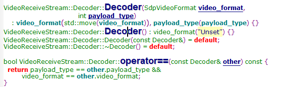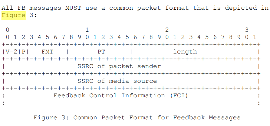 class NackStructor {public:uint32_t version :2; //协议版本号(2bit)uint32_t padding :1; //是否有填充(1bit)可理解为是否有其他跟随或补充信息在消息中 uint32_t fmt :5; //(5bit)在不同消息中叫法不同,也叫blockcount或RC,此处指格式 //format,在NACK消息中此值为1,之所以同时具有fmt和packettype//是因为某些消息存在多级类型,比如当前的NACK消息属于Feedback//类型。因此fmt=1(Feedback).uint32_t packettype :8; //包类型(8bit),NACK消息类型值为205,Feedback子类型 uint32_t length :16; //(16bit)消息长度 uint32_t ssrc; //构造发送当前消息包的端的SSRC,若本端是此NACK包的发送者,此//SSRC值就是本端的SSRC值(源标识符)uint32_t ssrcsource; //NACK消息部分,也是SSRC值,在此可称为媒体源标识符,用来指明//此消息要反鐀谁的情况。比如我是接收端,我知道发送端的音频流//(SSRC:1234)给我发来的数据包有丢包,我要反鐀对方音频流的//情况,那这个地方就应该填写1234(对方音频流SSRC)。uint32_t pid:16; //packet id(sequence number)详见下面PID-BLP图 uint32_t blp:16;