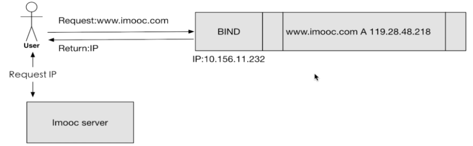 imooc.com. IN NS dns1.imooc.com. # 设置bind服务是由哪台服务器解析