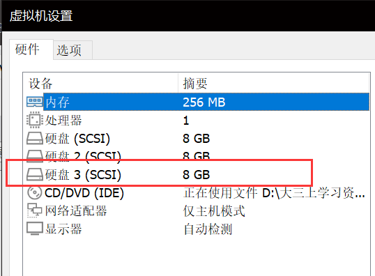 7、新增一个物理盘并建立2个物理分区,大小分别为10M和20M建立3个目录:/学号,/姓名拼音,/学号+姓名拼音;
