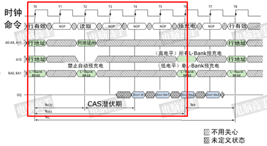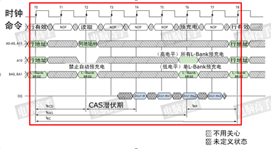 - 对内存进行读、写或刷新操作时,需要在这两种脉冲信号之间插入延迟时钟周期。