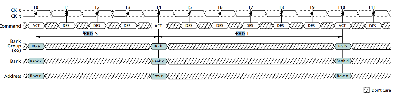 - tRRD_S表示不同bank,tRRD_L表示相同bank