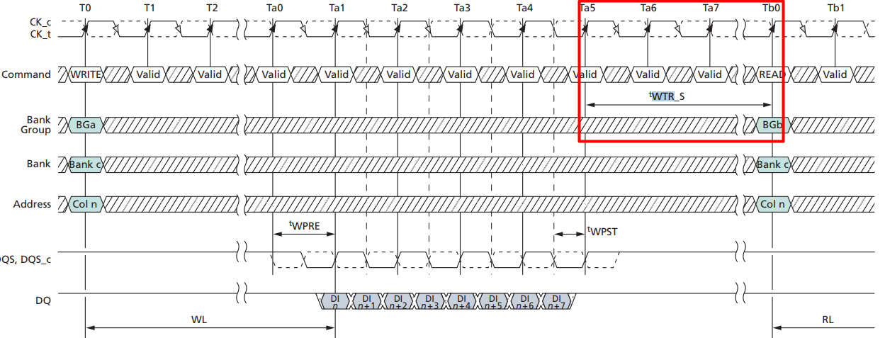 - tWTR_S表示不同bank,tWTR_L表示相同bank