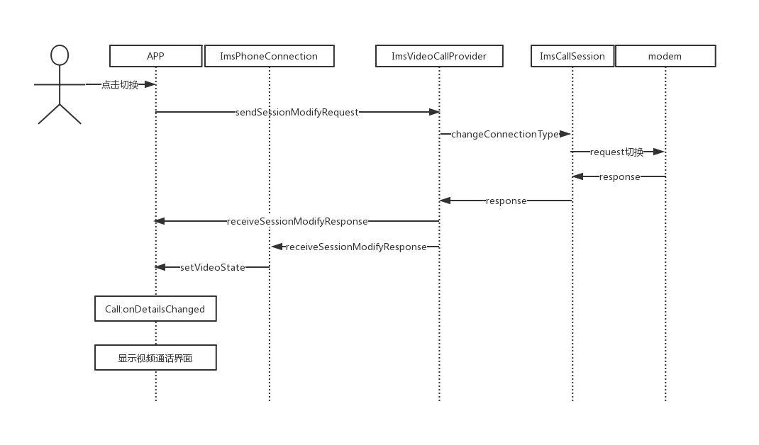 视频通话同ims语音通话逻辑几乎相同,不一样的地方在于他们的video state不同,因为应用通过video state来判断是否为视频通话。