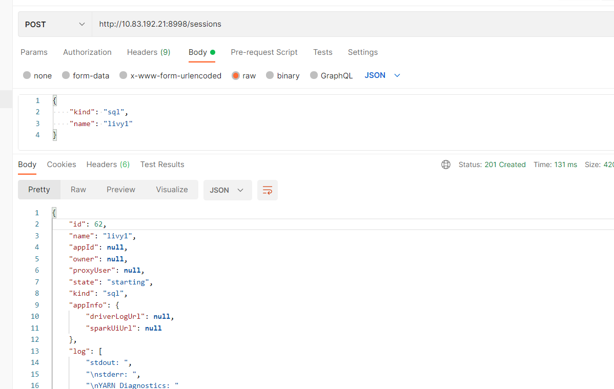 如:创建会话rest接口(可以配置yarn运行的参数)