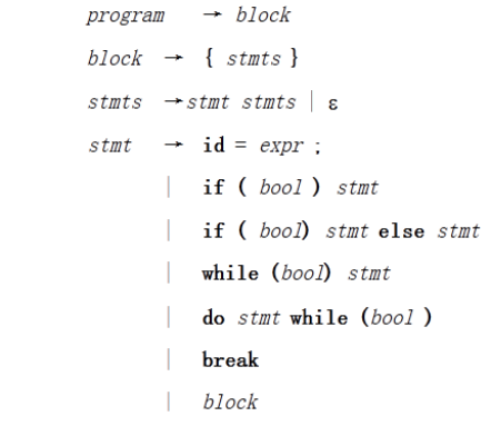 {if(flagerror==1){return;}switch(finaltableint[finalnum]){case 1:printf("stmt-->id=expr;\n");match("id");match("=");expr();match(";");break;case 100:match("if");match("(");Bool();match(")");stmt();if(strcmp(finaltable[finalnum],"else")==0){printf("stmt-->if(bool) stmt else stmt\n");match("else");stmt();break;}else{printf("stmt-->if(bool) stmt\n");break; }case 400:printf("stmt-->while(bool) stmt\n");match("while");match("(");Bool();match(")");stmt();break;case 500:printf("stmt-->do stmt while(bool)\n");match("do");stmt();match("while");match("(");Bool();match(")");break;case 800:printf("stmt-->break\n");match("break");break;default:printf("stmt-->block\n");block();break;}