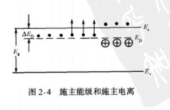 - V族元素在硅、锗的电离能很小,如下表,V族杂质在硅、锗中释放电子产生导电电子形成正电中心,故被称为施主杂质或n型杂质。释放电子过程称为施主电离。释放电子前为中性称为束缚态,释放后称为离化态