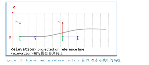 俯仰角在s/t/h轴坐标系中不可能出现,参考线的高程如下图所示。高程对s的长度不产生影响。