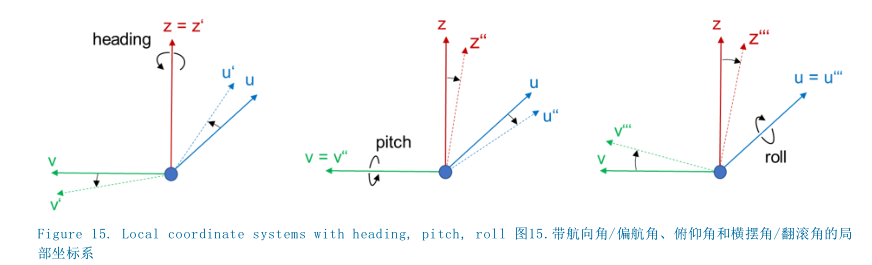 通过依次设置航向角/偏航角(heading)、俯仰角(pitch)和横摆角/翻滚角(roll),元素(如物体、标志等)可被置于惯性坐标系中: