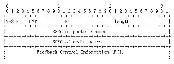 RTCP 的反馈报文包头定义如下,FMT 和 PT 决定了该报文的类型,FCI 则是该类型报文的具体负载: