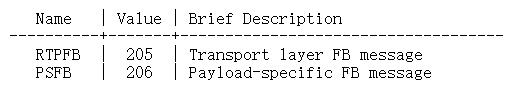 Payload type (PT): 8 bits 这是RTCP数据包类型,将数据包标识为RTCP FB消息. IANA定义了两个值: