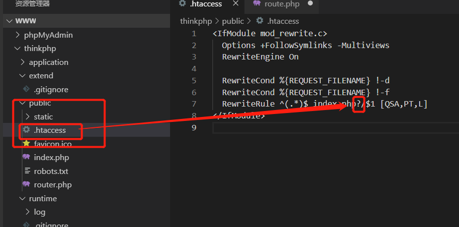 5、隐藏入口文件,这样在路径上面就不会出现 “ index.php ” 字样。