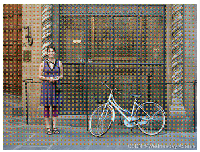 所谓Anchors 就理解成9个不同的框好了,特征图上的每个点都有一个Anchors。这九个不同的框按大小比例生成的。这个框是对应于原图,就是图1右侧那个红色的。这个框的中心是特征图的每一个点。下面这个就是原图,红色点就是特征图上的点。