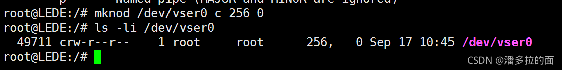 mknod是make node的缩写,就是创建一个节点(设备文件又叫做设备节点)。在linux系统中,一个节点代表一个文件,创建一个文件最主要的根本工作就是分配一个新的节点(注意,这是存在于磁盘上的节点,之后还会有存在于内存中的节inode)。包含节点好的分配(节点号在一个文件系统中是唯一的,可以以此来区别不同的文件。如上面ls -i选项就列出在一个文件系统中是唯一的,可以用来区分不同的文件。如上面ls命令的-i选项就列出来了/dev/vser0设备节点号为49711),然后初始化好这个新节点(包含文件模式、访问时间、用户ID、组ID等元数据信息,如果是设备文件还要初始化好设备号),再将这个初始化好的节点写入磁盘。还需要在文件所在的目录下添加一个目录项,目录项中包含了前面分配的节点号和文件的名字,然后写入磁盘。存在于磁盘上的这个节点用一个结构封装。
