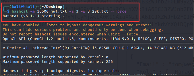 如果签名算法,加密后的载荷和最终得到的加密字符串都已知,且密钥不够复杂的话,使用暴力破解便有可能将密钥解出。