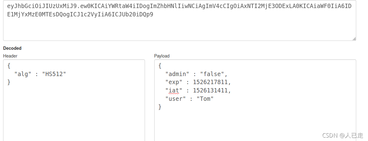 本次给出了一串JWT token,让我解码来获取其中的用户