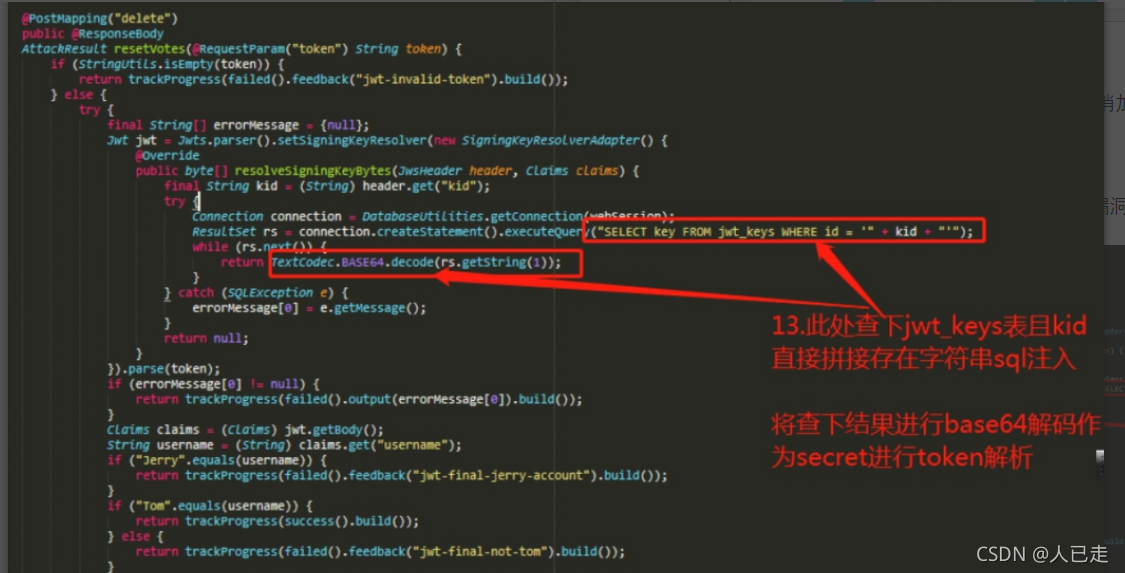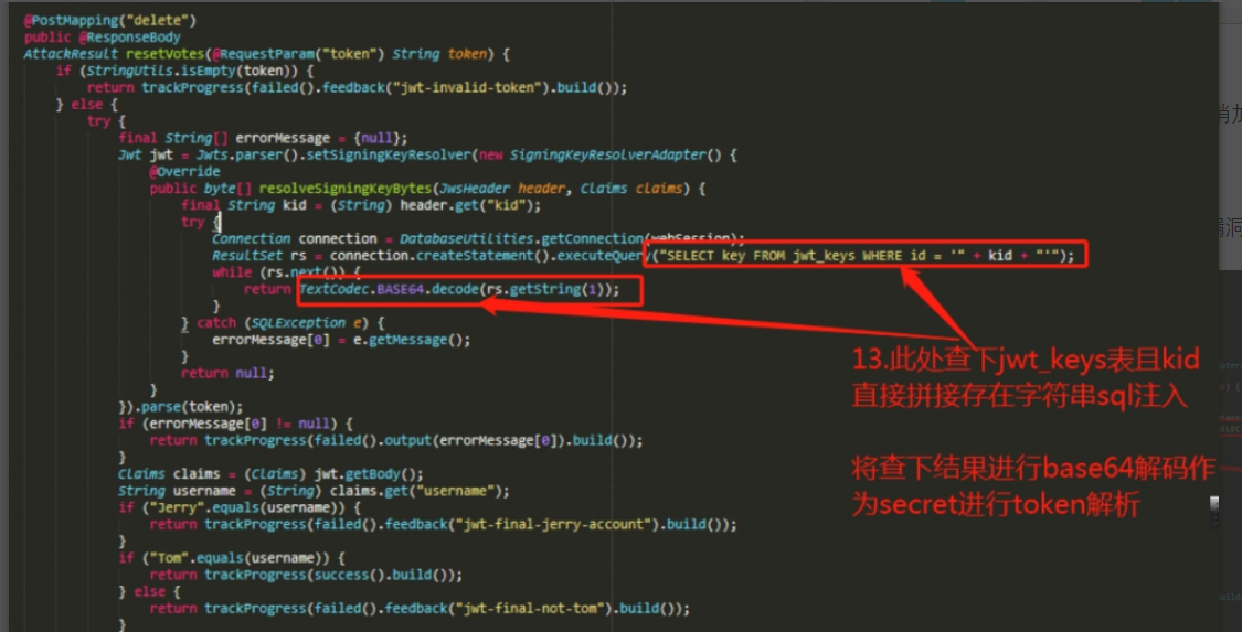 kid这个参数直接拼接到了SQL语句中,而且将查询的结果作为解码后作为secret进行token解析