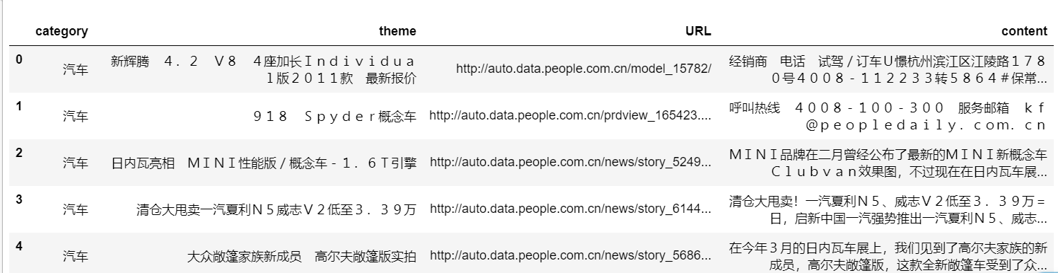 df_news.head() #读取前5行#使用jieba分词器分词