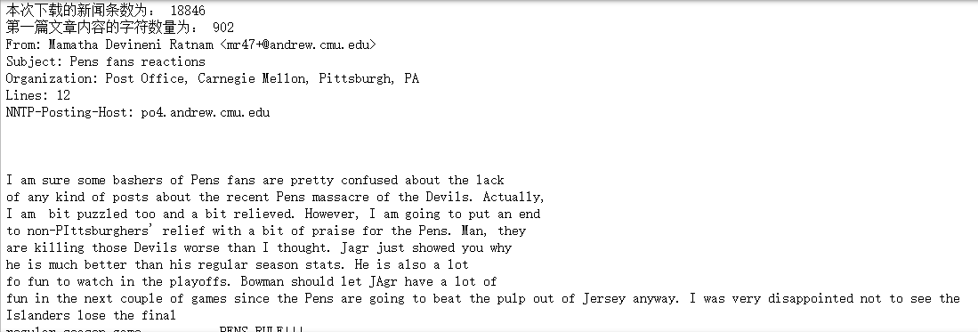 可知:本次下载的新闻共有18846条