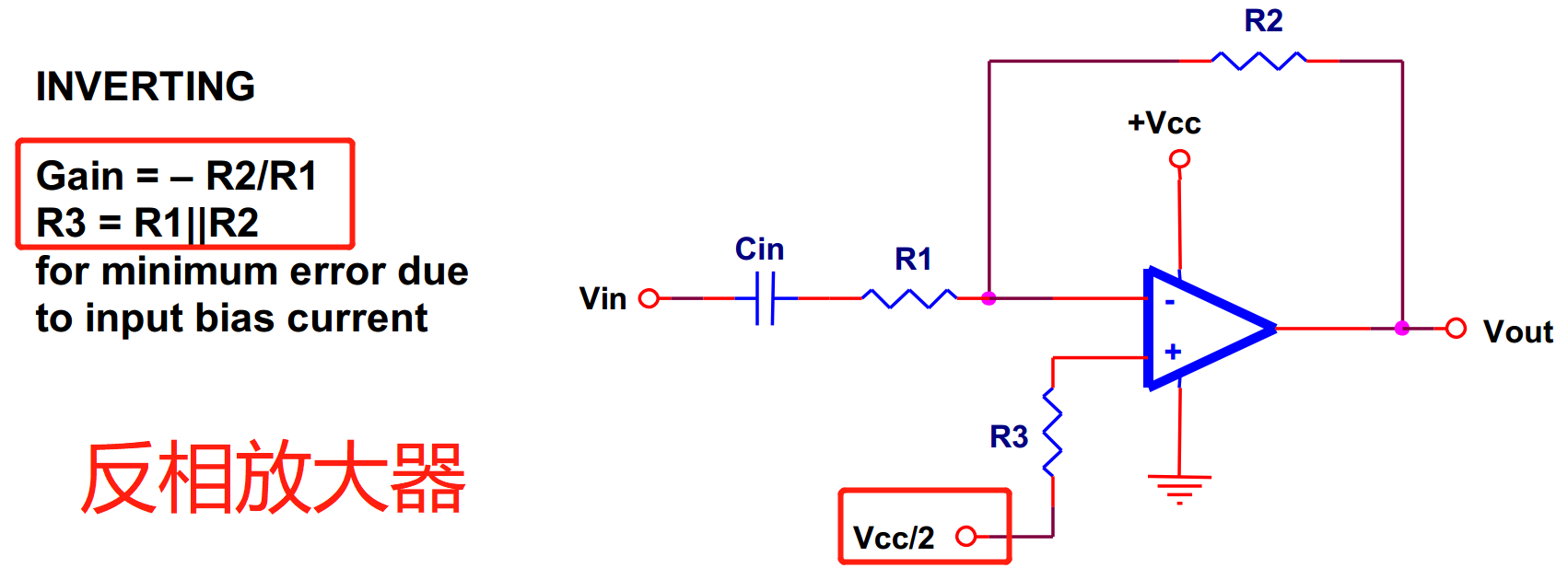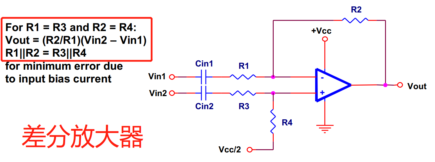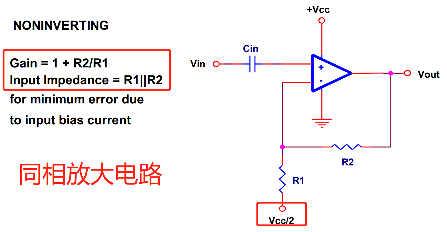 注意:Cin的存在----输入和输出电压一般都是参考电源地的,如果直接将信号源的输出接到运放的输入端,这将会产生不可接受的直流偏移。如果发生这样的事情,运放将不能正确的响应输入电压,因为这将使信号超出运放允许的输入或者输出范围。