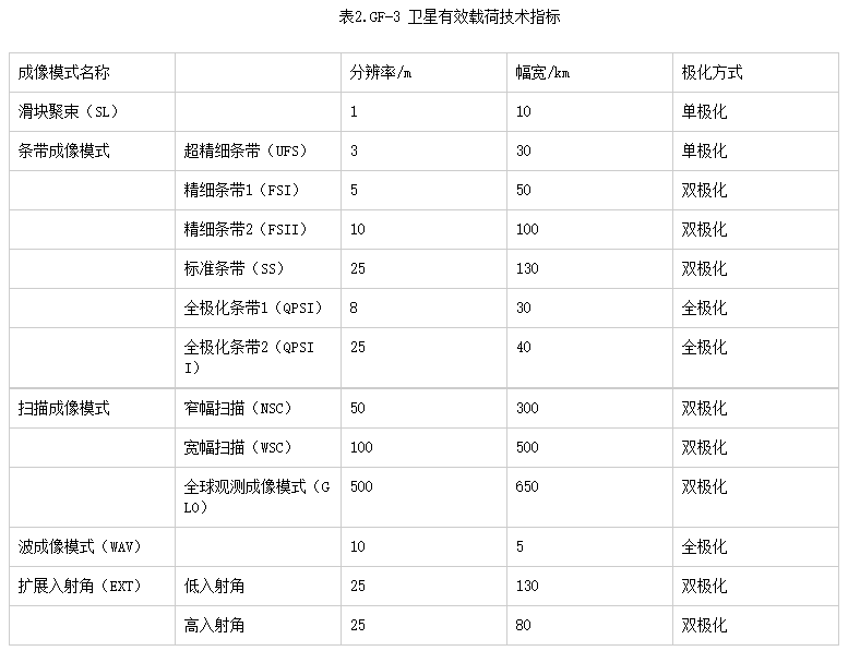高分三号是世界上成像模式最多的合成孔径雷达(SAR)卫星,具有12种成像模式,不仅涵盖了传统的条带、扫描成像模式,而且可在聚束、条带、扫描、波浪、全球观测、高低入射角等多种成像模式下实现自由切换,既可以探地,又可以观海,达到“一星多用”的效果。由于具备1米分辨率成像模式,高分三号卫星成为世界上C频段多极化SAR卫星中分辨率最高的卫星系统。