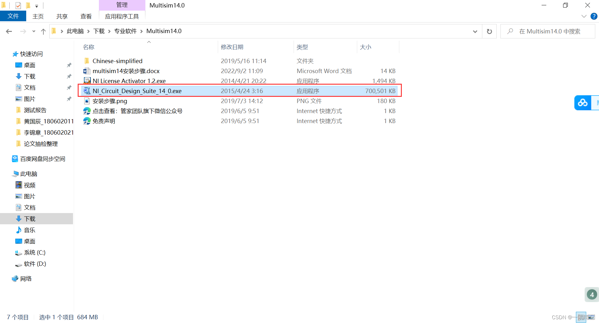 参考链接:Multisim14.0的详细安装步骤_骄阳似火_2018的博客-CSDN博客