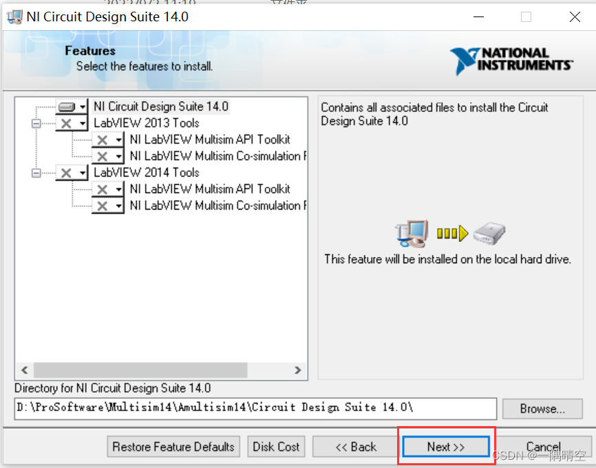 选择合适路径,next(因为我想把multisim的东西都放在一起,所以在上边解压的地方新建了个Amultisim14文件夹用于存放安装好的multisim)