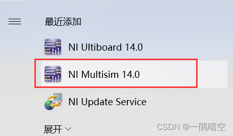 在开始菜单中找到NI Multisim 14.0,拖到桌面