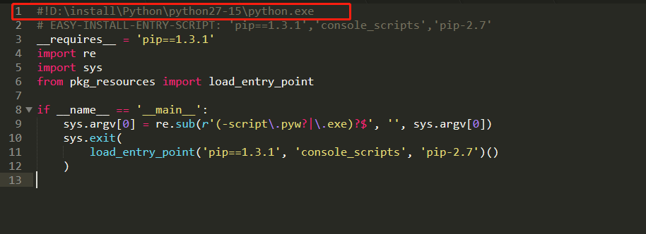 修改第一行数据#!D:\install\Python\python27-15\python.exe