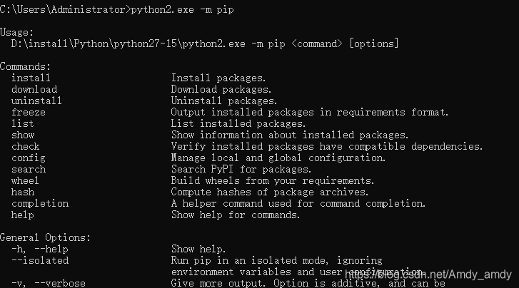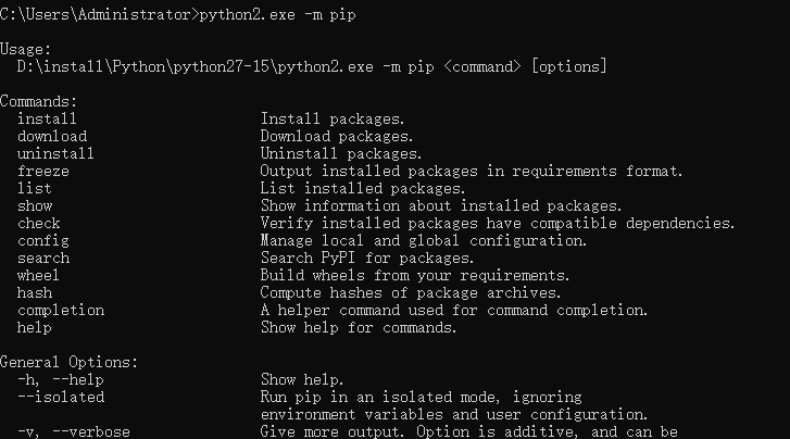 这里以我命令的python2.exe为例:python2.exe -m pip