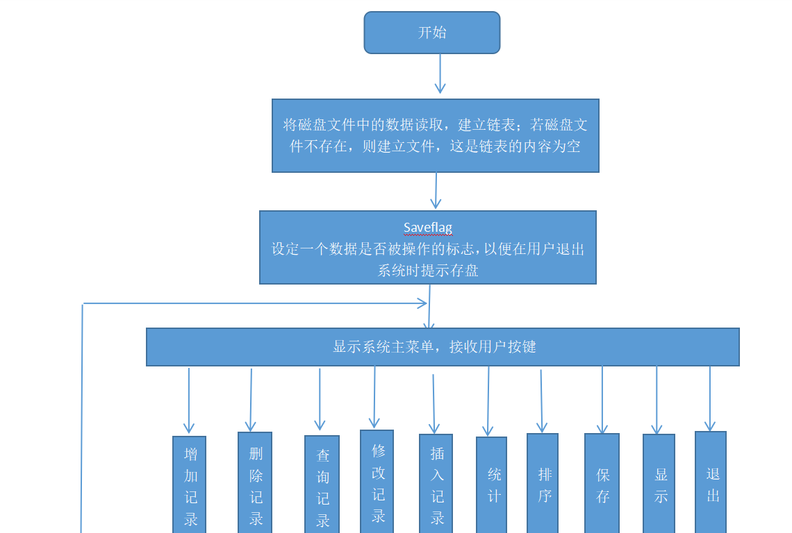 本系统包含了很多函数,实现了学生成绩管理菜单系统所需的基本功能。系统主要包含了九个模块,分别是添加学生信息、浏览学生信息、查询学生信息、修改学生信息、删除学生信息、排列学生信息、读取文件学生、保存到文件、退出系统。