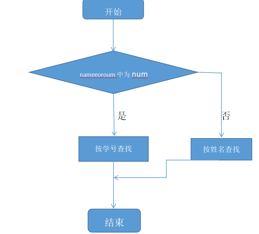 nameornum中只能存放“num”或“name”,当存放的是“num”时则按学号查找,当存放的是“name”时则按姓名查找。