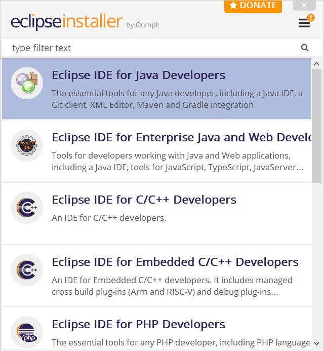 - 下载完成后,点击第一项“Eclipse IDE for Java Developers”